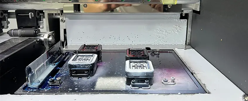- Verstopfung: Weiße Tinte neigt aufgrund ihres höheren Pigmentanteils zum Verstopfen. Verhindern Sie Verstopfungen, indem Sie die Tinte regelmäßig zirkulieren lassen, die Düsen reinigen und hochwertige Additive gegen Verstopfungen verwenden, die für weiße Tintenpatronen entwickelt wurden.