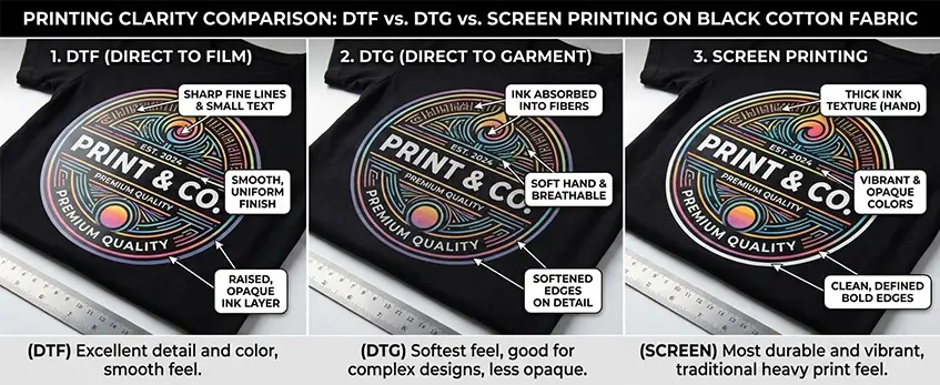 When choosing a custom apparel printing method, understanding how DTF compares with other popular techniques helps you decide what’s best for your business.