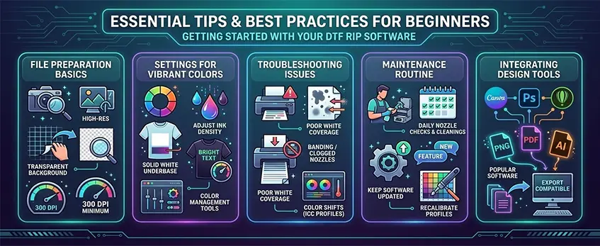 Der Einstieg in die DTF RIP-Software ist einfacher, wenn Sie einige wichtige Tipps beachten, um reibungslose Drucke und lebendige Ergebnisse zu gewährleisten.