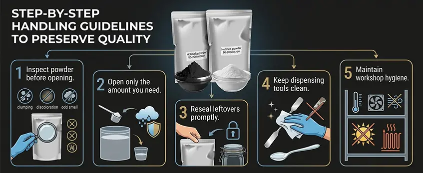 To keep your hot melt glue powder performing at its best, follow these simple handling steps: