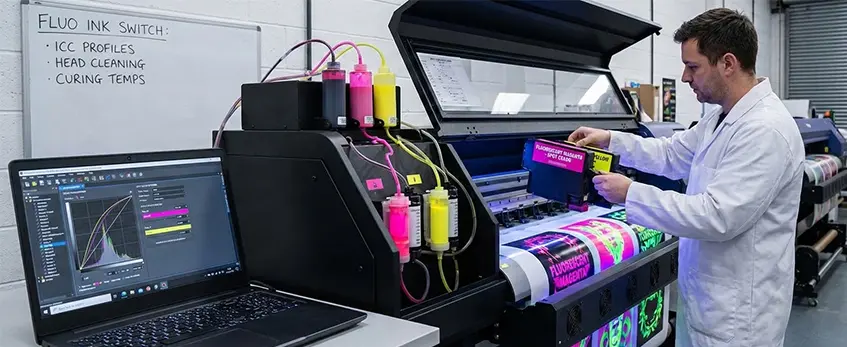 Die Umstellung auf fluoreszierende Farben erfordert eine Lernkurve bei der Einstellung Ihrer RIP-Software für den lebendigen, UV-reaktiven Textildruck ohne Übersättigung des Films oder Beeinträchtigung von Details. Dies bedeutet, dass Sie Ihren aktuellen Workflow aktualisieren oder verfeinern müssen, um diese Pigmente und ihre einzigartigen Fließeigenschaften zu handhaben.
