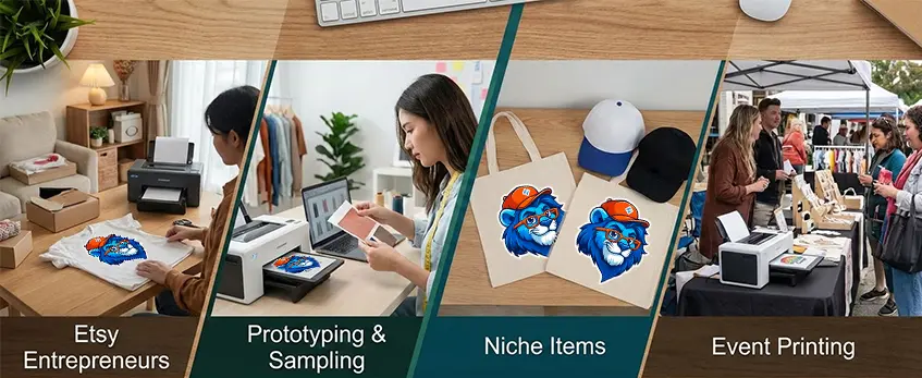 A desktop DTF printer is a great fit for small businesses and creatives who need flexibility without a big upfront investment. Here’s who benefits the most: