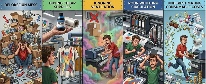 Buying a DTF kit can be overwhelming, and avoiding common pitfalls will save you time and money. Here’s what to watch out for: