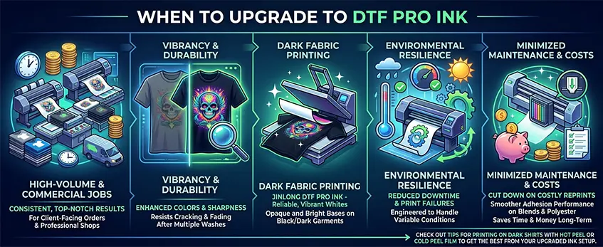 For those serious about reducing downtime and improving transfer results across various garments, upgrading to DTF Pro Ink saves money in the long run.