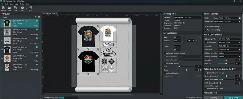 - Densité de l'encre : Adjust according to fabric type and desired vibrancy; too much ink can cause issues, so balance is key.