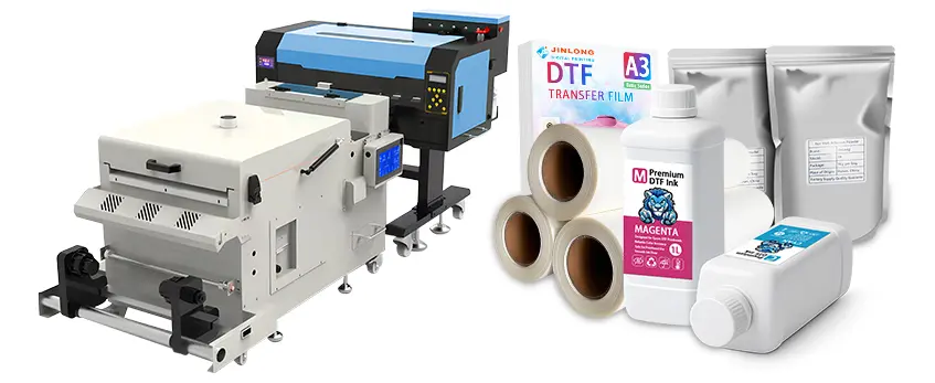 Jinlong’s DTF printers are favored because of their plug-and-play setup, excellent after-sales support, and consistent print quality. Plus, they come with compatible consumables like inks and powders that help avoid common beginner issues like clogging or fading. You can explore Jinlong’s reliable consumables like their Poudre adhésive thermofusible TPU to enhance your print durability.