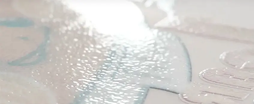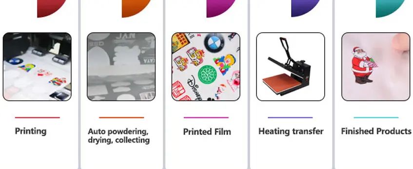 - Poudre adhésive : While the ink is still fresh, powdered adhesive is applied to the print.