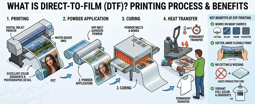 En , 2026, les marchés poussent les imprimeries vers le DTF pour sa flexibilité, sa rapidité, sa durabilité et sa rentabilité par rapport au procédé HTV traditionnel.
