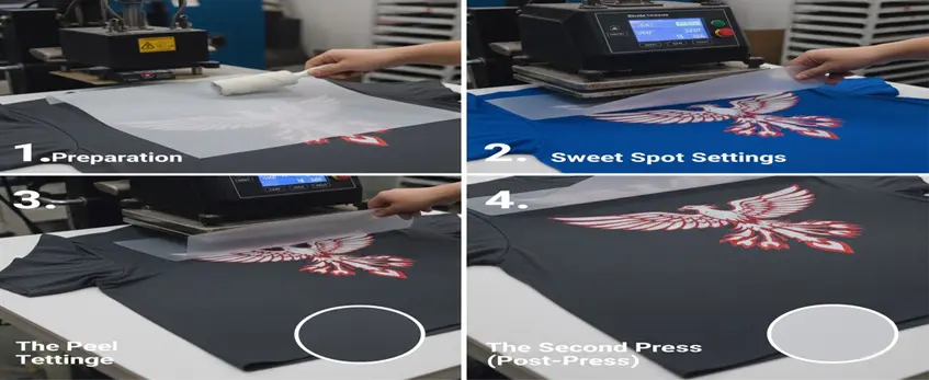 Pour obtenir les meilleurs résultats, il est essentiel d'appliquer correctement les transferts DTF pour t-shirts par pelage à chaud. Voici un guide simple qui couvre la préparation, les réglages de la presse à chaud, la technique de pelage et la deuxième presse.