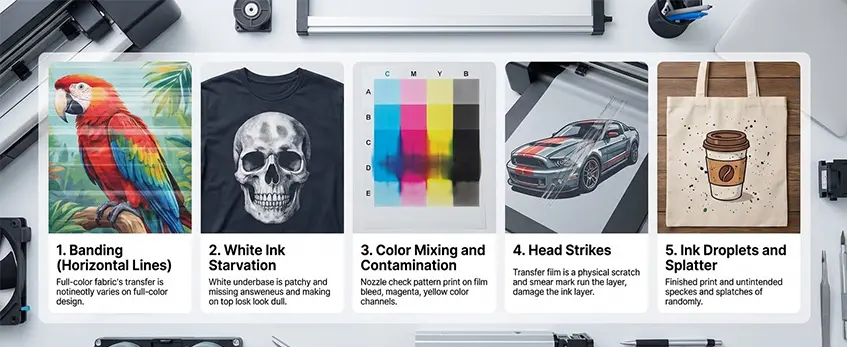 Lorsque votre tête d'impression DTF commence à fonctionner, les symptômes révèlent souvent les causes profondes. Une détection précoce de ces signes peut vous faire gagner du temps et de l'argent.