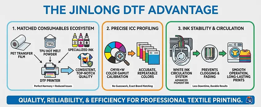 The Jinlong DTF Advantage: Matched Consumables, ICC Profiling, and Ink Stability