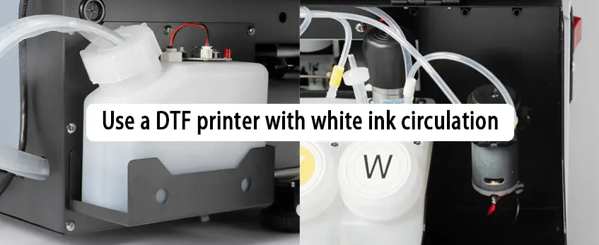 Since white ink has a heavier pigment load and tends to settle quickly, it’s crucial to shake white ink cartridges vigorously for 2 to 3 minutes before use. This prevents sedimentation, which is a common cause of white ink clogging in DTF printers.